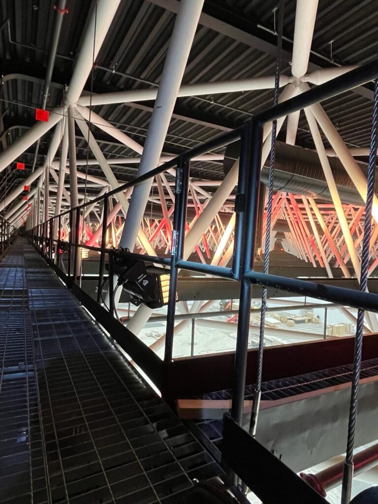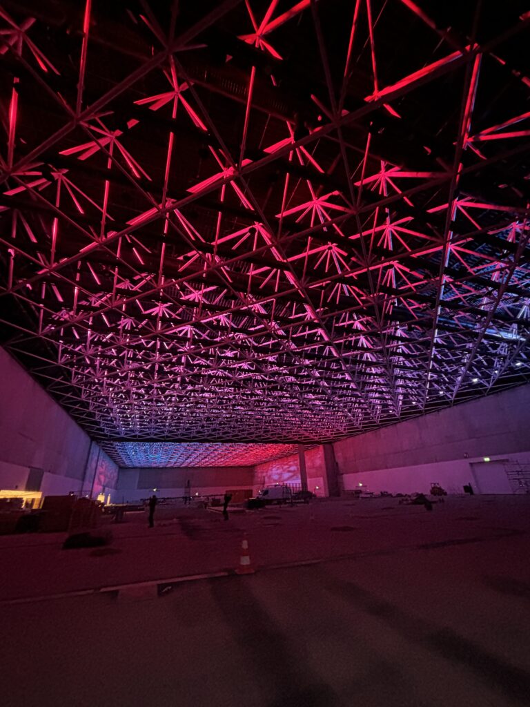 Ca. 100 LED Fluter und einige Kilometer Kabel wurden durch uns installiert. Der Fokus lag auf Zuverlässigkeit, hohe Wandelbarkeit und blendfreie Inszenierung der Dacharchitektur. Zum Einsatz kamen dafür Elation Paladin Panel mit von uns exklusiv entwickelten Blenden, die eine blendfreie aber effiziente Lichtinszenierung ermöglichen.