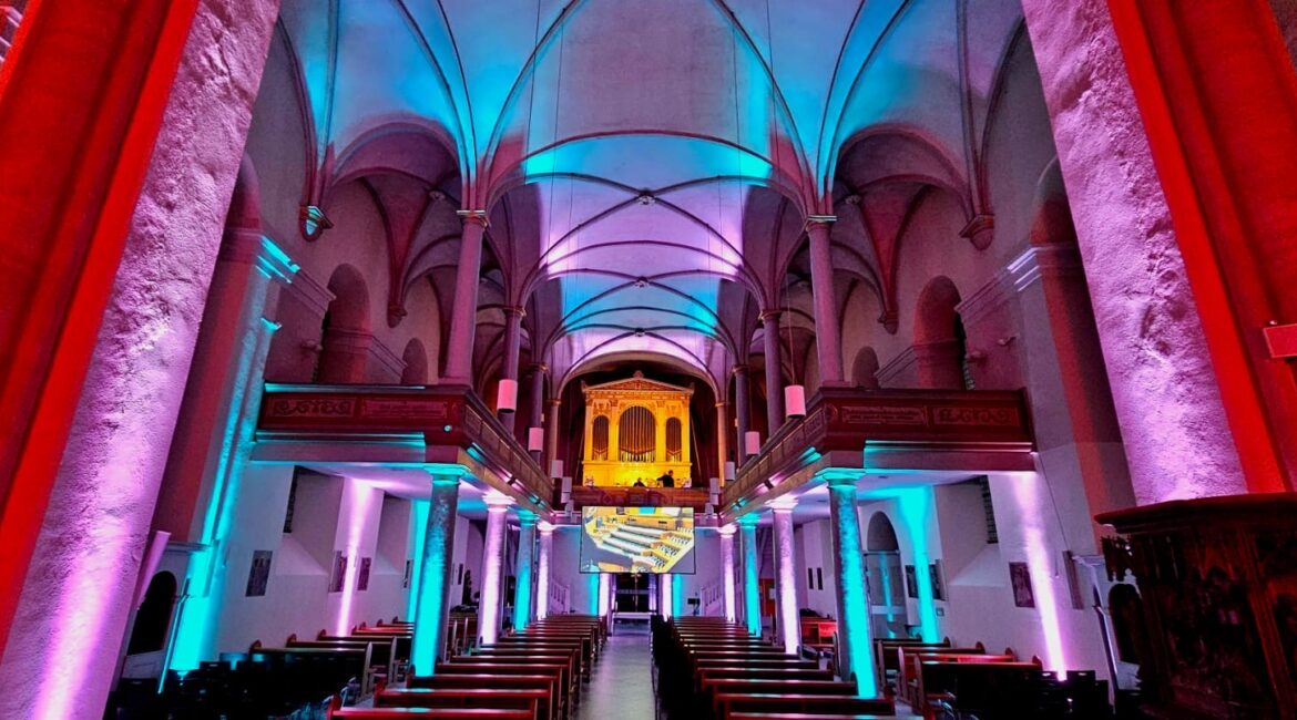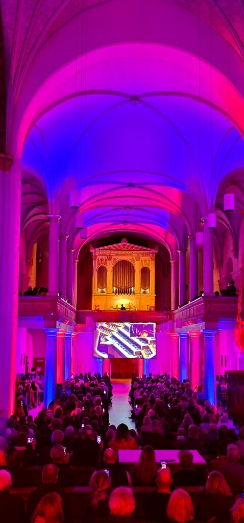 Im Oktober 2025 unterstützten wir das Konzert der britischen Organistin Anna Lapwood in der Troisdorfer Kirche St. Johannes mit eindrucksvoller Architekturbeleuchtung.
